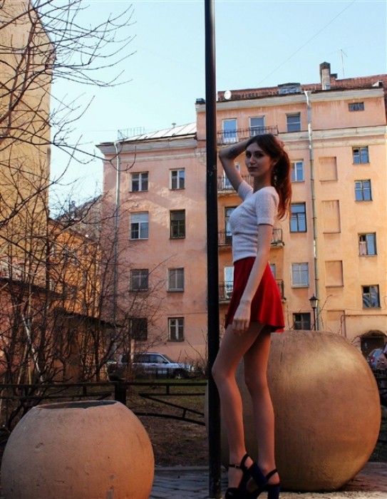 Как тут отмечали, по внешке может быть самую чуточку полнее, чем на фото, но ничего лишнего, стройная, фигуристая.